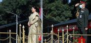 काठमाडौँ । राष्ट्रपति विद्यादेवी भण्डारी आठौँ संविधान दिवस तथा राष्ट्रिय दिवसका अवसरमा आज मूल समारोह समितिद्वारा सैनिक मञ्च, टुँडिखेलमा आयोजित समारोहमा सहभागी हुनुभयो ।समारोहमा उपराष्ट्रपति नन्दबहादुर पुन, प्रधानमन्त्री शेरबहादुर देउवा, कामु प्रधानन्यायाधीश दीपककुमार कार्की, सभामुख अग्निप्रसाद सापकोटा, राष्ट्रियसभाका अध्यक्ष गणेशप्रसाद तिमिल्सिना, मन्त्रीगण, संवैधानिक निकायका प्रमुख, सरकारका उच्च अधिकारी, मित्रराष्ट्र तथा नियोगका प्रमुख र प्रतिनिधिको उपस्थिति थियो ।समारोहमा नेपाली सेनाको हेलिकोप्टरबाट पुष्पवृष्टि गरिएको थियो भने विविध सांस्कृतिक झाँकीका साथै नेपाली सेना, नेपाल प्रहरी र सशस्त्र